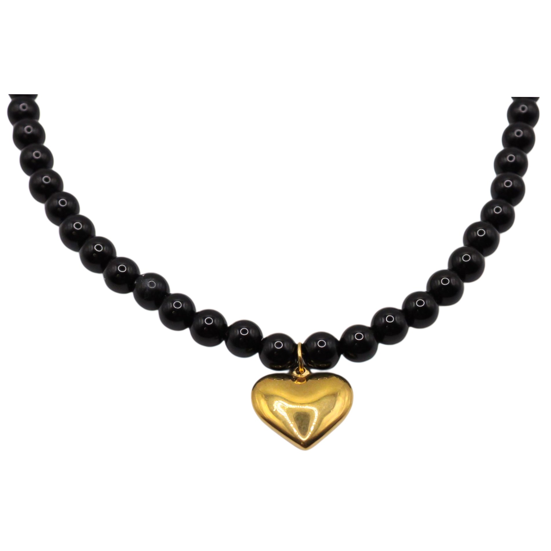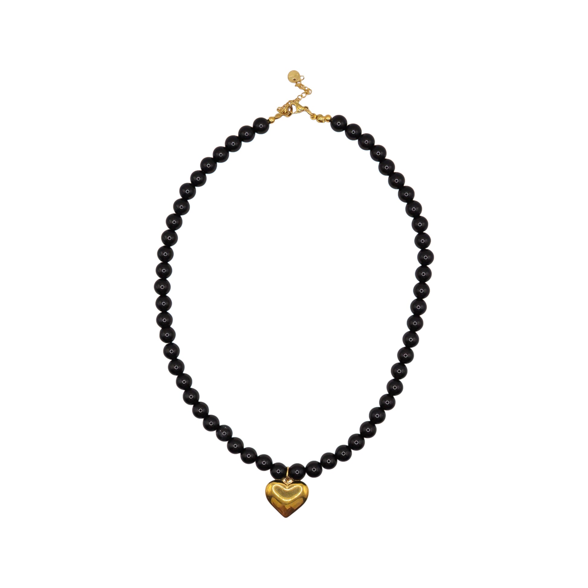 O colar Heart combina pedras naturais com um pendente em forma de coração dourado em aço, trazendo um toque romântico e sofisticado, tornando o colar uma peça versátil para realçar qualquer look com elegância.