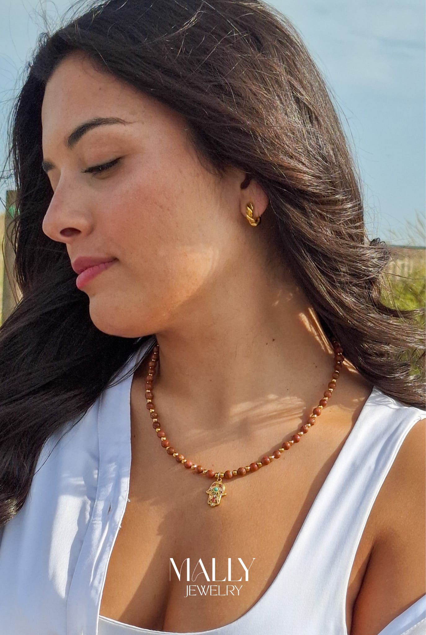 ✨️ O colar Serena é um exclusivo da Mally (feito à mão por nós) com pedras naturais em tons terrosos e um pendentevem aço inoxidável dourado, trazendo proteção e estilo em cada detalhe.